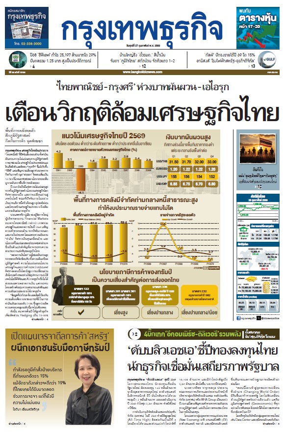ทันหุ้น 27 กุมภาพันธ์ - 1 มีนาคม 2569