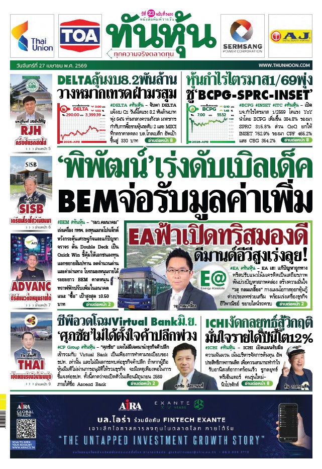 ข่าวหุ้น 27 เมษายน 2569
