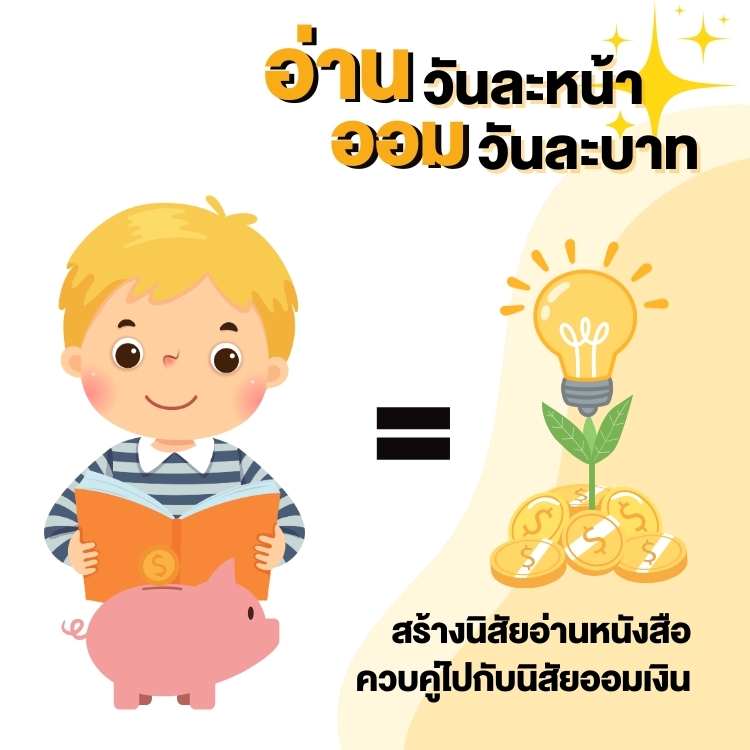 ถ้าคุณกำลังมองหาวิธีง่าย ๆ ในการสร้างความสุขและความมั่นคง ลองเริ่มต้นวันนี้เลย หยิบหนังสือที่คุณสนใจขึ้นมา เปิดอ่านเพียง 1 หน้า แล้วหยอดเงินลงกระปุก 1 บาท จากนั้นให้เวลาเป็นเครื่องพิสูจน์ คุณจะพบว่า การอ่านคือการลงทุนในตัวเอง และการออมคือการลงทุนในอนาคต