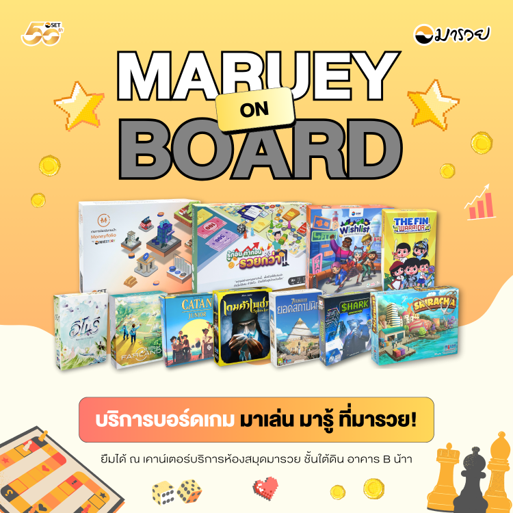 ขอแนะนำบริการใหม่ "Maruey on Board" 🎲📚 บริการนี้จะทำให้การเรียนรู้และพัฒนาทักษะด้านการเงิน การลงทุน และชีวิตเป็นเรื่องสนุก!
