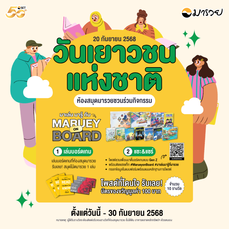 ห้องสมุดมารวยขอเชิญชวนเยาวชนไทยมาร่วมเฉลิมฉลองวันเยาวชนแห่งชาติ ด้วยการเรียนรู้และพัฒนาทักษะด้านการเงินและการลงทุน ผ่านกิจกรรม "มาเล่น มารู้ กับ Maruey on Board" เพื่อให้เยาวชนได้สนุกและได้ความรู้ไปพร้อม ๆ กัน 🎲📖💰