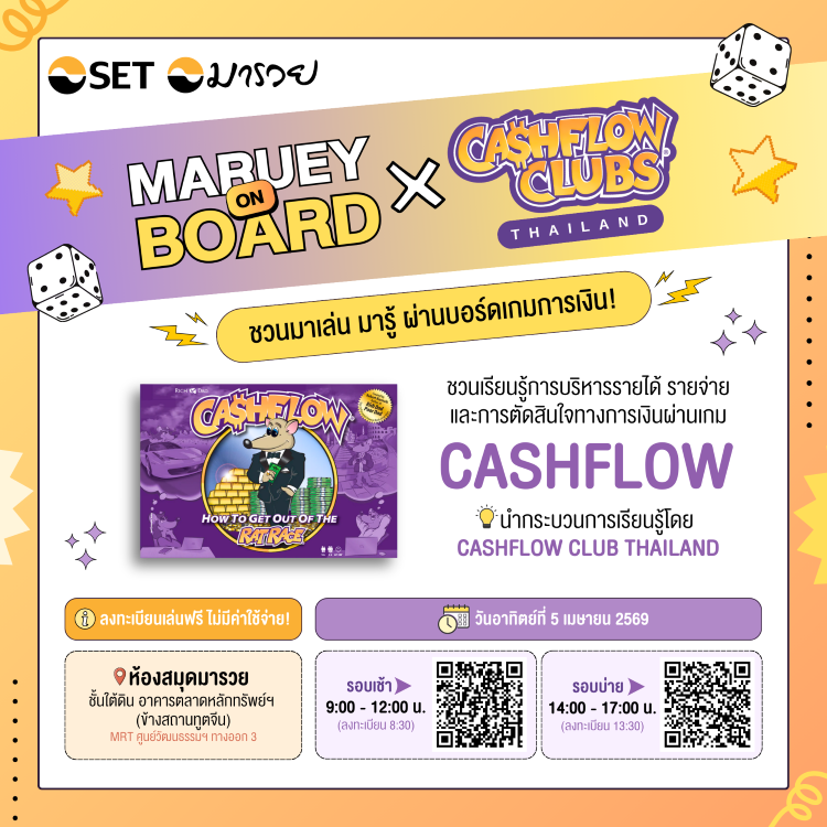 ห้องสมุดมารวยชวนมาเล่น มารู้ ผ่านบอร์ดเกมการเงิน! กับกิจกรรม Maruey on Board เรียนรู้การบริหารรายได้ รายจ่าย และการตัดสินใจทางการเงิน ผ่านการลงมือเล่นจริงด้วยบอร์ดเกม “CASHFLOW” พร้อมนำกระบวนการเรียนรู้โดย Cashflow Club Thailand