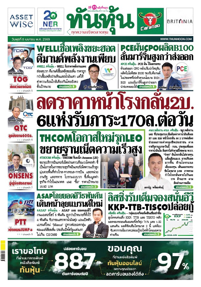 ข่าวหุ้น 8 เมษายน 2569