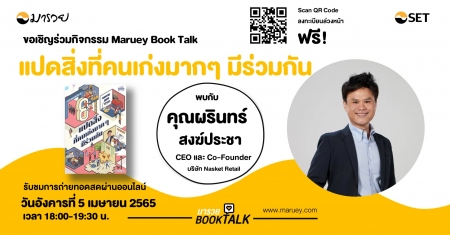 เคยสงสัยกันหรือไม่ ว่า คนที่ประสบความสำเร็จในชีวิตไม่ว่าจะเป็นเรื่องหน้าที่การงาน หรือชีวิตส่วนตัว พวกเขาเหล่านี้มักจะมีสิ่งที่คล้ายๆกัน ไม่ว่าจะเป็นหลักการหรือแนวคิดการใช้ชีวิตที่เหมือนๆกัน แล้วสิ่งเหล่านั้นมันคืออะไรบ้าง มาร่วมค้นหาหลักการหรือข้อคิดที่คนเก่งมักมีเหมือนกัน กับกิจกรรม Maruey Book Talk หนังสือ "แปดสิ่งที่คนเก่งมากๆ มีร่วมกัน" พบกับคุณผรินทร์ สงฆ์ประชา CEO และ Co-Founder บริษัท Nasket Retail เจ้าของเพจ ParinTalk ผู้เขียนหนังสือเล่มนี้
